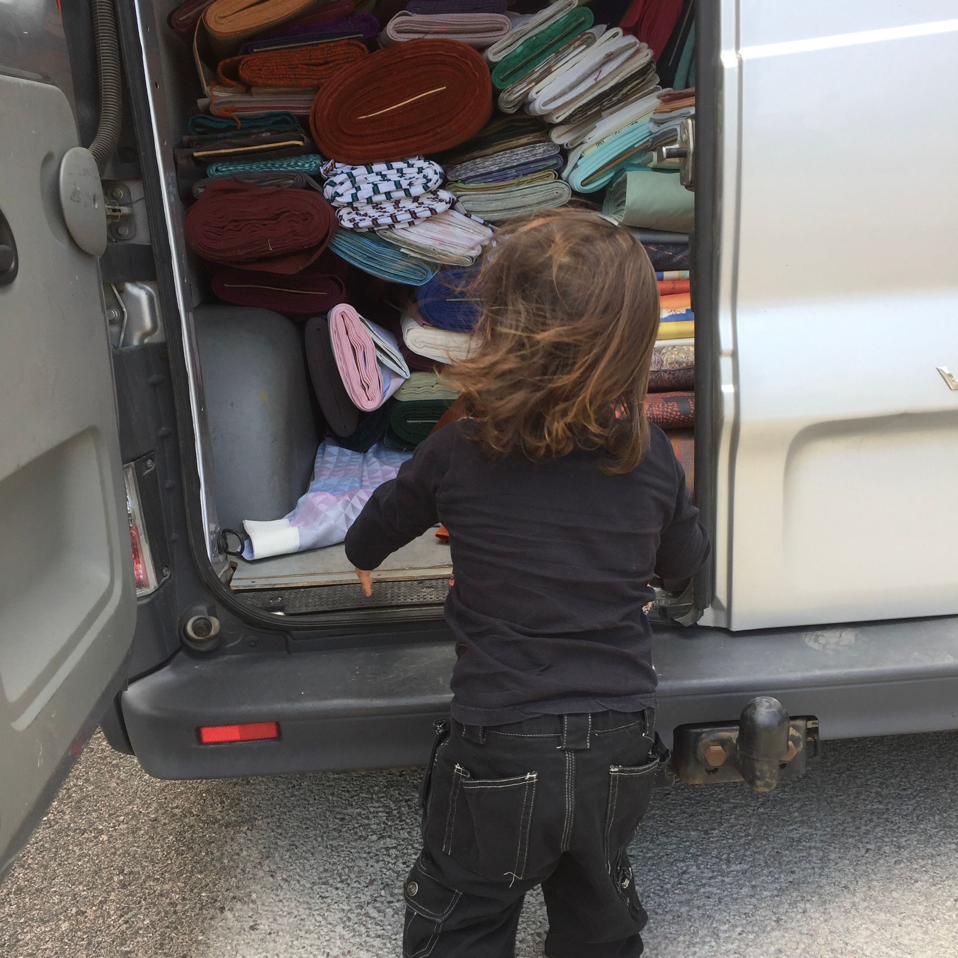 70 000 meter tyg, knappar i oändlighet, sybehör, trådar och hyllor… Allt från den gamla butiken skulle flyttas till vårt nya lager.